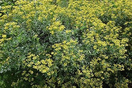 أزهارها صفراء اللون خنثوية، خماسية السبلات، المقعرةالشكل، المتجمعة الصفحة، المسننة الحافة، خماسية البتلات، تتراوح أسديتها بين 8 و 10، متراصة على قرص سميك، محيطة بالبويض الخارج منه قلم يعلوه ميسم بسيط؛ إزهرارها هامي الإرتكاز عثكولي التجميع، يخرج في فصل القيض ويخلف بزرا مر الطعم في اقمام.